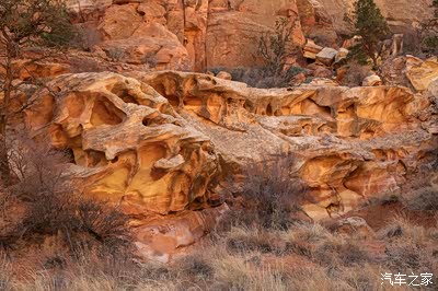任何人第一眼看见这样的风景都会惊叹,逛美国国家公园不仅仅可以看见风景,当你看到那些千百万年来自然风化变迁,保存完好的由巨石到土壤砂砾的全过程景观的时候,简直就是一本地质学的经典教科书!你都可以自修完一门地质功课!甚至你能看到路边好像千百年来都未曾有人类足迹踏过的自然形成的亚丹地貌,薄薄的土壳,真的会很自然的不忍心走上去!不要离开路面一步!这里虽然是沙漠地带,植被保护得非常完好!自然的一切依旧是那么自然。人类只是地球的观光客!