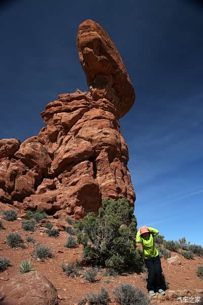这是拱门公园里著名的景观,平衡石!围着转一圈,不同角度看看为什么不倒呢?