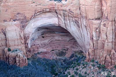 于是我们意外的见到了这样的历史纪念碑,一个巨大的石拱门里面1200年前的人类居住遗址,画面里面都是先人的房屋和庭院,只能用望远镜看清楚!大自然给人类提供了天然的庇护场所。离开时老人还站在路边等我们,问我们是否看到她说的风景,实在感动,这也是我们这次美国之行最美的人和人之间的风景!回去后我会专门写一篇在美国关于陌生人之间微笑的帖子!