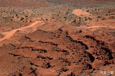 下面蚂蚁一样的汽车,还是走在满是红尘的土路上。
