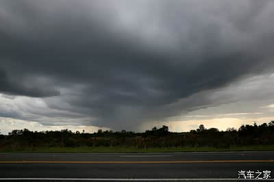 在前往佛罗里达西部的途中,眼看着我们的左手方向远远的乌云升起,一大团雨云在向我们逼近,有点兴奋,