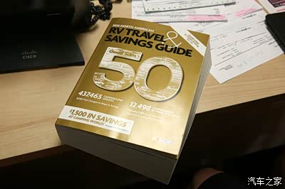 看见送我们这厚厚的一大本了吧,全部是关于房车旅行和房车营地的资料,里面有一万两千家房车营地的联系方式,会员可以享受10%的优惠,同时还可以在全美100多家连锁店面享受最高30%的优惠。