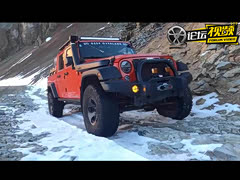V8牧马人皮卡翻越冰雪覆盖的高原